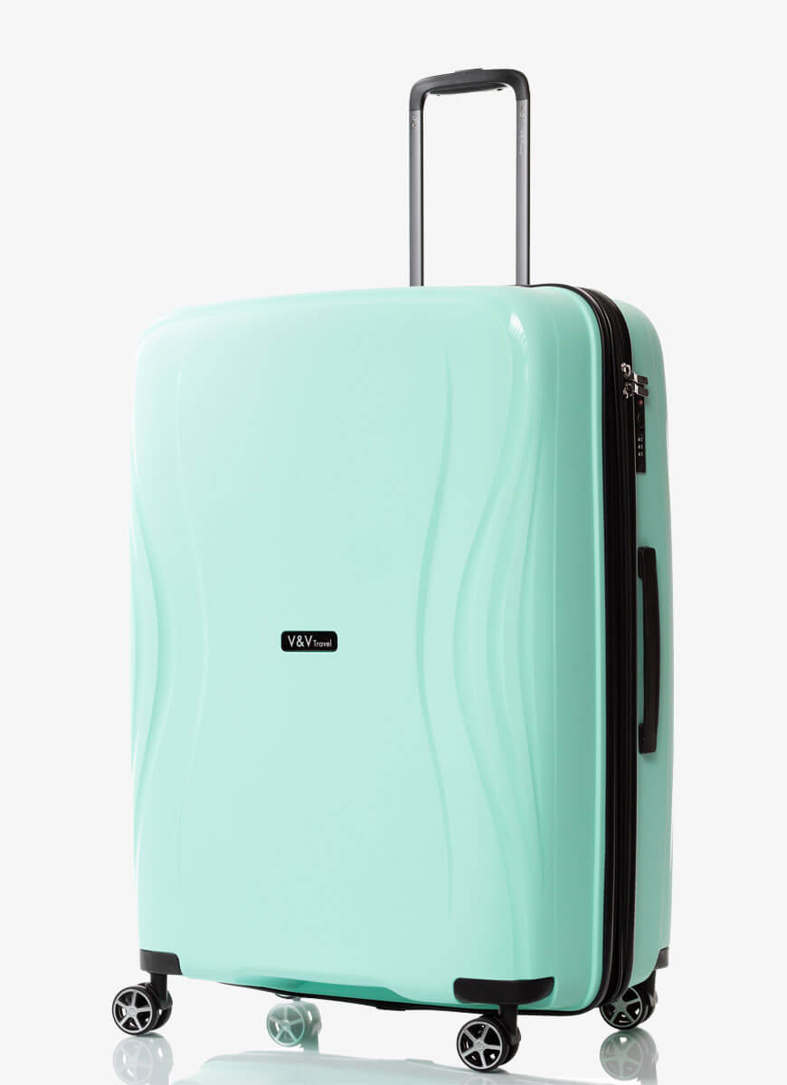 Flash Light Luggage Series. Large suitcases in this set - and we mean large! - are great for traveling around the world with a big group. The collection comes in a stylish design that won't leave you indifferent. Also, check out the sturdy, lockable aluminum pull-out trolley and durable dual wheels that roll super quietly in any direction. These suitcases are made of reliable and quality material, 100% polypropylene, and have two comfortable compartments so that you can take everything you need on your trip. A significant advantage is the TSA combination lock and anti-scratch diamond cover. P.S. By the way, we offer two color options (see the other one here).
