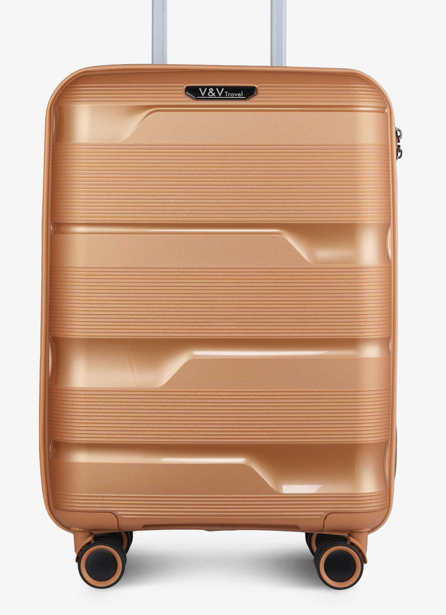 Series of suitcases Metallo. Stylish suitcases with an updated modern design. This medium-sized travel suitcase is a good choice for traveling at any time of the year, including hot summers. The suitcases are made of durable 100% polypropylene and have an aluminum retractable handle with a lock. Their silent double wheels rotate freely in different directions, and the TSA combination lock allows you to securely protect your luggage. And it is also worth paying attention to the new anti-scratch coating designed to prolong the use of our suitcases.